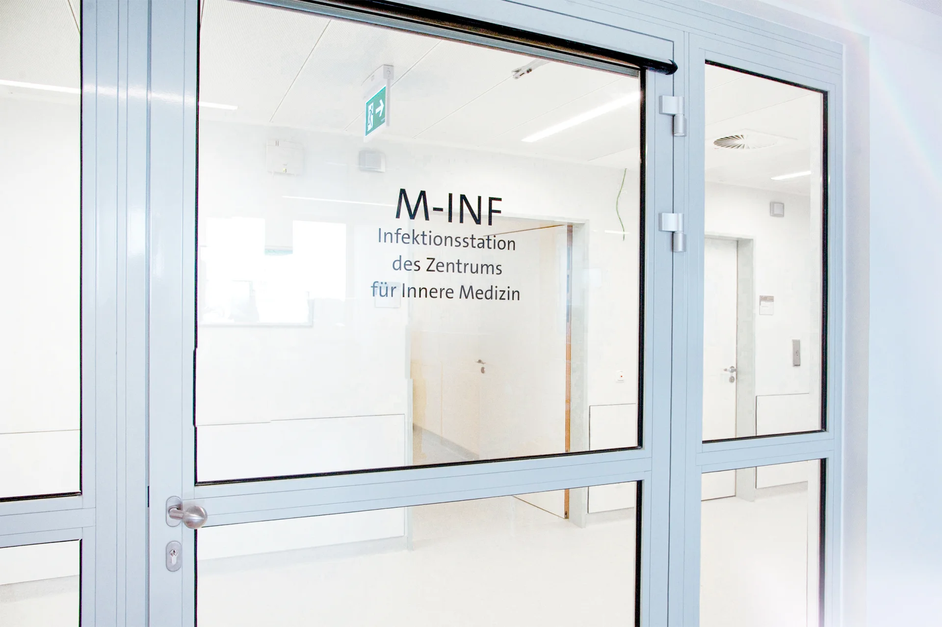 Die interdisziplinäre Infektionsstation M-INF I bietet mit 10 Einzel- und 4 Doppelzimmern optimale Möglichkeiten in der Versorgung von Patienten mit Infektionserkrankungen. Eingerichtet ist die Station mit einem großen Anteil an Isolationszimmern (7 Einzel- und 1 Doppelzimmer), die über eine spezielle Vorschleuse verfügen, so dass ein Austritt von Krankheitserregern verhindert wird.